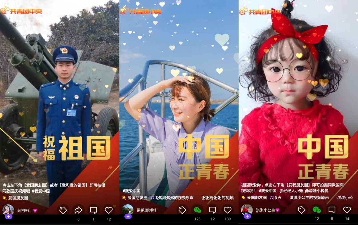国庆节将近,在新中国成立 70 周年之际,越来越多的年轻人正在用时下流行的短视频来表达自己的爱国热情,以青春之名说出「我爱中国」!