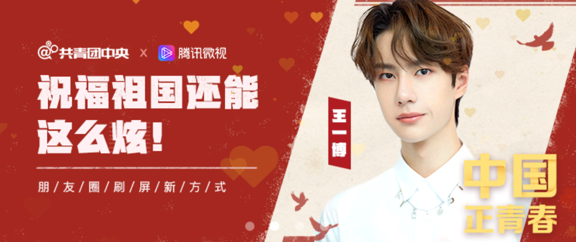 不少明星也参与到这项正能量的活动中,如王一博就用这种形式表达对祖国母亲的热爱。祝福的声音正从四面八方传来,千言万语都在腾讯微视上汇成一句话:「祝福祖国,中国正青春」。