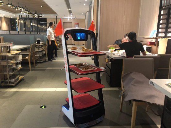 近年间,以送餐机器人为代表的餐饮机器人进入行业第一线,开始向顾客提供服务,并改变了多家品牌的传统管理模式。服务员无需再忙碌于后厨与大堂间来回传菜,只需让机器人停靠在出餐口,厨房员工直接将餐品放置于机器人托盘上,点击屏幕桌号,机器人就能出发进行配送,而服务员则等候于大堂,随时为顾客提供点餐、上菜、问询等服务。