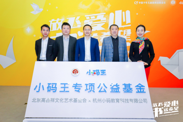 10 月 14 日,中国少年儿童新闻出版总社、北京高占祥文化艺术基金会、小码王共同举办「放飞爱心·书送希望——小码王专项公益基金成立暨图书公益启动仪式」。北京高占祥文化艺术基金会理事长高飞、副理事长郭徽、副秘书长刘其琛,中国少年儿童新闻出版总社常务副社长郝向宏、社委会主任吴睢,国家图书馆少儿馆副馆长陈慧娜,小码王创始人兼 CEO 王江有,民进北京市委社会服务处处长魏斌,中国社会科学研究院姚宇教授,小码王品牌总监安俊霖、市场总监杨健等嘉宾出席活动。