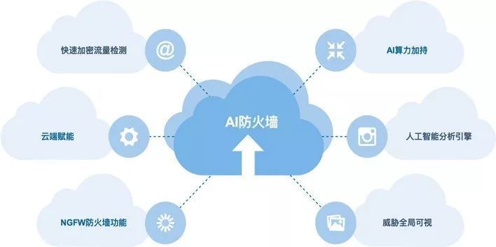AI防火墙是基于AI硬件加速检测分析引擎的新一代防火墙,即具有AI芯片,可通过本地及云端大数据进行训练及建模,为未知威胁、未知用户行为及未知应用行为提供安全策略推荐,本地可对用户、应用及威胁进行检测与分析,具有全面高级威胁检测分析能力,能够应对各类复杂高效的高级网络攻击威胁。