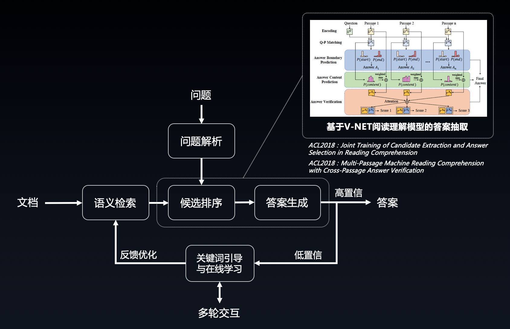 对话式文档问答技能,可以对传统需要人工抽取FAQ或意图的业务文档进行自动学习,通过搜索与语义理解技术,构建了用户输入的问题与业务文档之间的桥梁,使得用户的问题可以由技能自动找到文档中的对应答案片段,使用端到端的多文档阅读理解模型V-NET和自然语言生成技术,技能得以返回更为精准的答案。整个问答技能的构建对开发者来说没有任何技术门槛,且对话式文档问答技能具有自主学习能力,可持续优化,大大提高问答系统的开发人效。