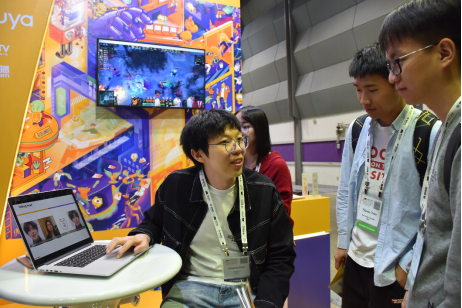 现场展出的虎牙虚拟直播间“前景分割”技术