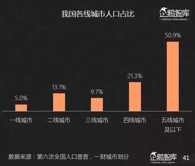 那么,下沉市场到底有多大?CEIC调查数据显示,第六次人口普查中,中国三线及以下城市覆盖人口有近十亿、占全国人口的七成以上,GDP则占全国比例近六成,贡献了中国三分之二的经济增长。