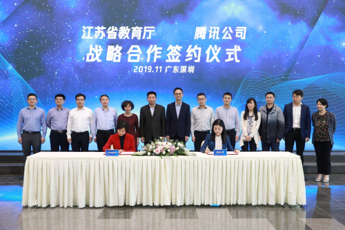 11月14日,江苏省教育厅与腾讯在深圳签署战略合作协议。今后,腾讯教育将凭借自身在人工智能、大数据、云计算以及互联网方面的技术和经验积累,助力江苏省打造具有前瞻性、创新性、先进性的“互联网+教育”平台和资源体系。同时,双方还将携手推进江苏省中小学人工智能课程建设,开展新工科专业共建,共同培养新时代科技人才。
