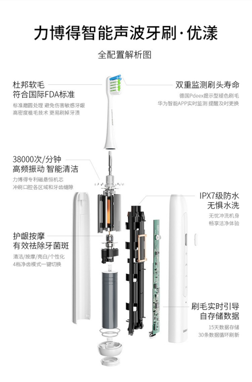 作为新加入HUAWEI HiLink智能家居生态的全新产品,力博得智能声波牙刷·优漾用了声波振动频率能够达到38000次/分钟的磁悬恒机芯技术,放入口中一键启动就能将牙膏和水在口腔中转化成无数微气泡,强劲的冲击力能够高效的清洁口腔各区域!无需花费大把力气就能轻松将牙垢、牙菌斑强力清除!