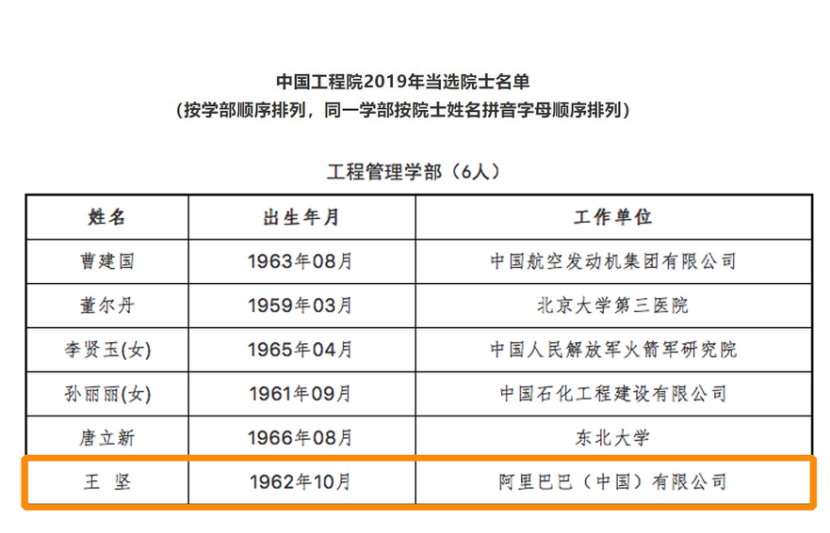 11 月 22 日,2019 中国工程院院士增选结果正式公布,阿里巴巴技术委员会主席王坚当选。