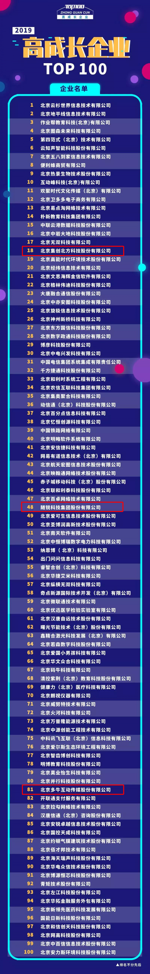近日,由北京中关村高新技术企业协会主办的“2019高成长企业TOP100评选”、“2019‘创业之星’、‘创投之星’评选”活动结果正式揭晓。