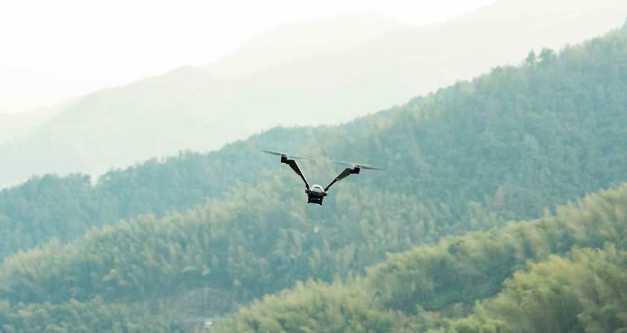续航问题始终是无人机产品的一大痛点。在大多数消费级无人机只有 30 分钟极限飞行航时的情况下,V-Coptr Falcon 将其续航能力提升至 50 分钟。这得益于 V-Coptr 精简的 V 型双旋翼结构设计(多项零零自有专利),结合其自主研发的舵面倾转技术和非线性动力模型设计及控制算法,让 V-Coptr 的动力系统在相同负载、同样电池动力的情况下,较同等尺寸的传统四旋翼飞行器,力效大幅度提升。