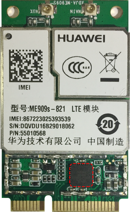 (白色为华为通信模组,红色为信大捷安国密安全芯片)