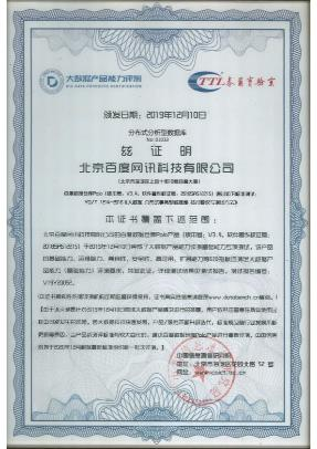 (百度数据仓库Palo通过大数据产品能力评测证书)