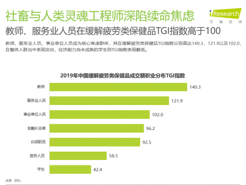 教师、服务业人员、公务员缓解疲劳类保健品TGI指数最高
