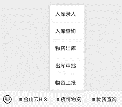 应急物资管理系统是面向各级卫健委及下属医疗机构,提供对应急物资的集中入库、分配及审批,物资库存情况上报及信息提醒等一系列功能,解决医疗机构库存上报不及时、上级分配审批不及时、汇总统计工作量大等问题。1、系统采用微信公众号为入口,方便用户使用手机操作。可以通过微信搜索「金山云 HIS」微信公众号,关注后进行体验。