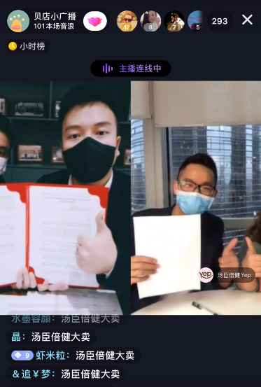 贝店相关负责人先后与朵拉朵尚电商渠道总监牛家乐、梵西总经理冯红伟、三勒浆常务副总张操、Noromega品牌总监王久云、善维纤创始人张家宁、汤臣倍健电商渠道负责人梁栋、胡庆余堂副总经理倪耀祖等品牌领导隔空签约,达成战略合作。