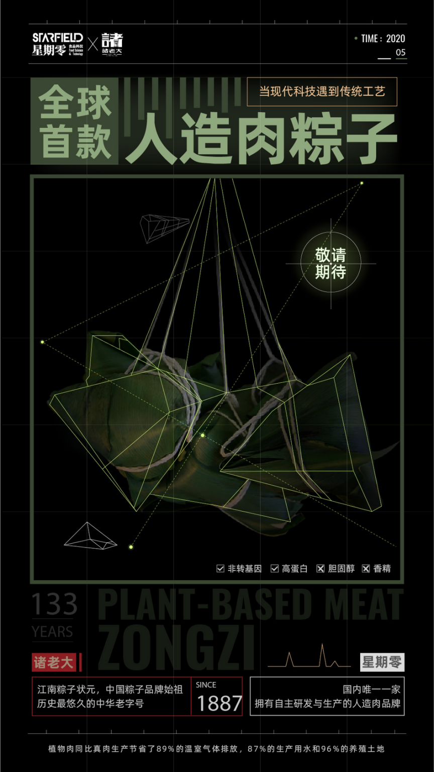 据星期零在发布会上披露,今天也是他们与红荔村的全球首款人造肉肠粉的发布日,红荔村在更少的原料制作出更多美食的路上探索了 18 年,这一次合作,是双方在环保健康饮食的品牌理念上的再一次落地,目前,在深圳的部分门店已经能品尝到这款特色小吃。不仅如此,中国第一款人造肉粽子也在星期零和享有江南粽子状元美誉的中华老字号诸老大联合研发下,将于今年的端午节售卖。
