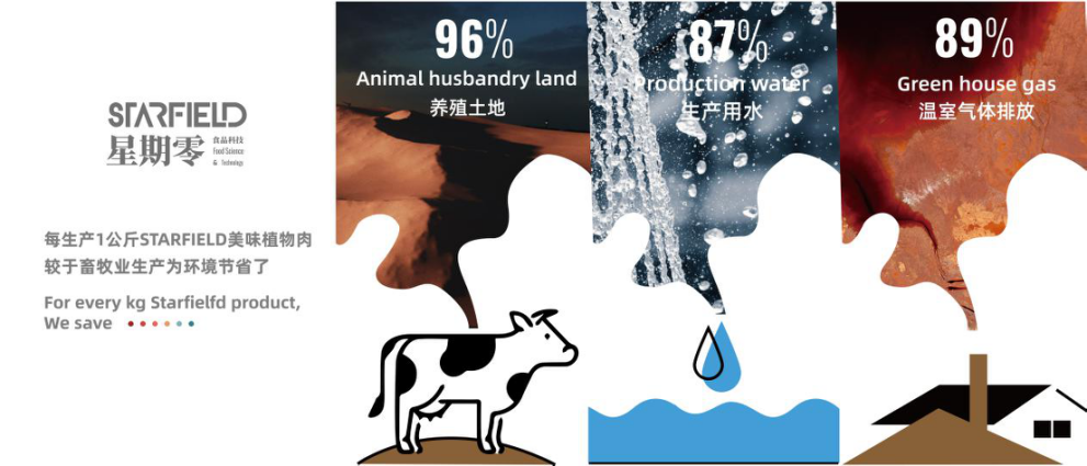 星期零 STARFIELD 成立于 2019 年 8 月(以下简称星期零),是一家集科研、生产、供应、服务于一体的自有人造肉解决方案企业。星期零所研发的人造肉也称为植物肉,以大豆为主要原料,提取出分离蛋白,经过加热、挤压、冷却、定型等步骤,制作出具有真肉结构的纤维状蛋白,再运用分子感官技术破解风味物质间的相互作用,最后形成色、香、味与真肉媲美的人造肉。