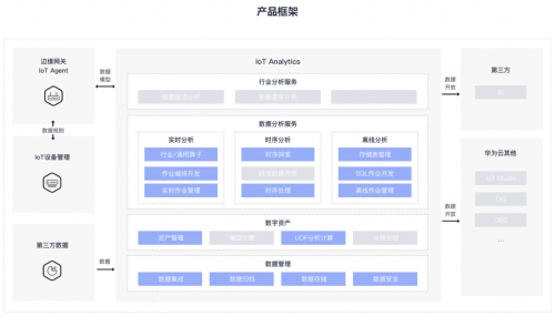 基于以上物联网数据分析面临的挑战,华为推出以资产模型为核心驱动的一站式物联网数据分析服务:基于物联网资产模型,整合大数据分析领域的最佳实践,以及物联网数据集成、清洗、存储、分析、可视化,为开发者打造一站式数据开发体验,并且与华为云物联网相关云服务(比如设备接入)无缝对接,降低开发门槛,缩短开发周期,快速实现物联网数据价值变现。