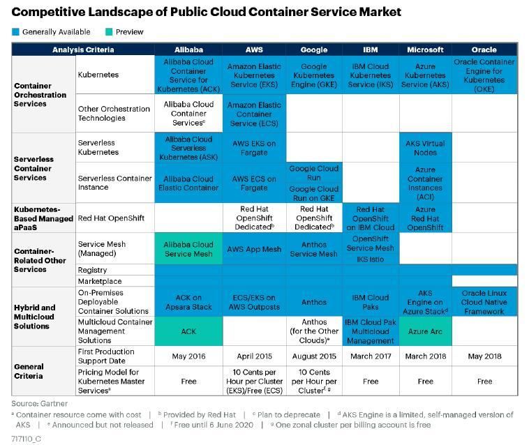 Gartner报告指出,企业使用容器技术是大势所趋,主流云服务商都在布局无服务化容器、混合云、安全和自动化DevOps等容器相关领域。