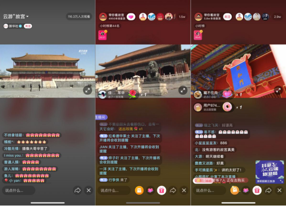 四月清明,原本的踏青出游季,却被突如其来的新冠肺炎疫情影响,让“家里蹲”成为了大众普遍的生活状态。然而,随着科技的发展,不出家门也能云游四海已不再是奢望,各类基于数字化的线上玩法为旅游行业注入了新活力。眼下,抖音直播就在全力打造“云端旅游局”,“大千世界”、“美好中国”、“奇妙游记”三大版块直播,让大众足不出户看世界。4月5日-6日,故宫博物院联合新华社、抖音、中信出版集团等平台,在抖音共同开启2020故宫首次直播。这次特别策划的“云游故宫”直播吸引了超过966万网友,一起跟随抖音直播的镜头“漫步”故宫,感受历史的温度。