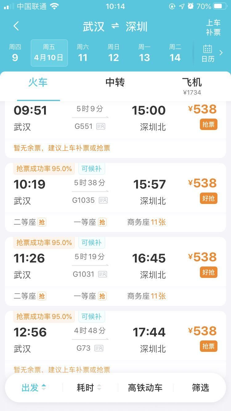 铁路客运方面,大量始发终到或经停武汉的旅客列车也于 8 日恢复运行。去哪儿网平台上,武汉出发的热门路线前五名依次是武汉-广州南、武汉-长沙南、武汉-深圳北、武汉-上海虹桥和汉口-重庆北。