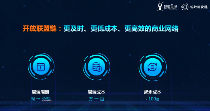 为解决这个问题,蚂蚁金服从去年底开始开发开放联盟链,降低中小企业「上链」门槛至数千元。开放联盟链基于蚂蚁区块链自主研发的技术,能支撑 10 亿账户规模、10 亿日交易量,实现每秒 10 万笔跨链消息处理能力(PPS)。