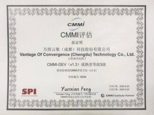 近日,万商云集经过CMMI研究院主任评估师的严格评估,顺利通过CMMI 3级认证,向业界展示了万商云集领先行业的研发管理能力和孜孜不倦的品牌追求。