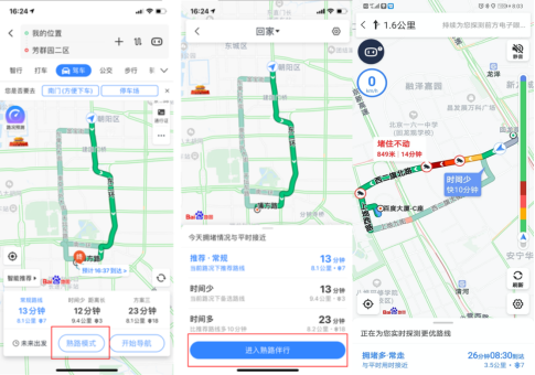 据悉,用户在百度地图中设置好“家”和“公司”的位置后,只要规划前往这两地的驾车导航,或通过“出行助手”中的上下班功能,就可以快速进入熟路模式。
