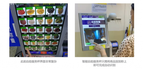 值得一提的是,人工智能的视觉方案不仅可以在商品装袋的情况下实现准确识别,同时该方案的自学习特性可使商品上新自动完成,且随着使用次数的增多,更丰富的使用数据会让自服秤识别准确度不断提升。