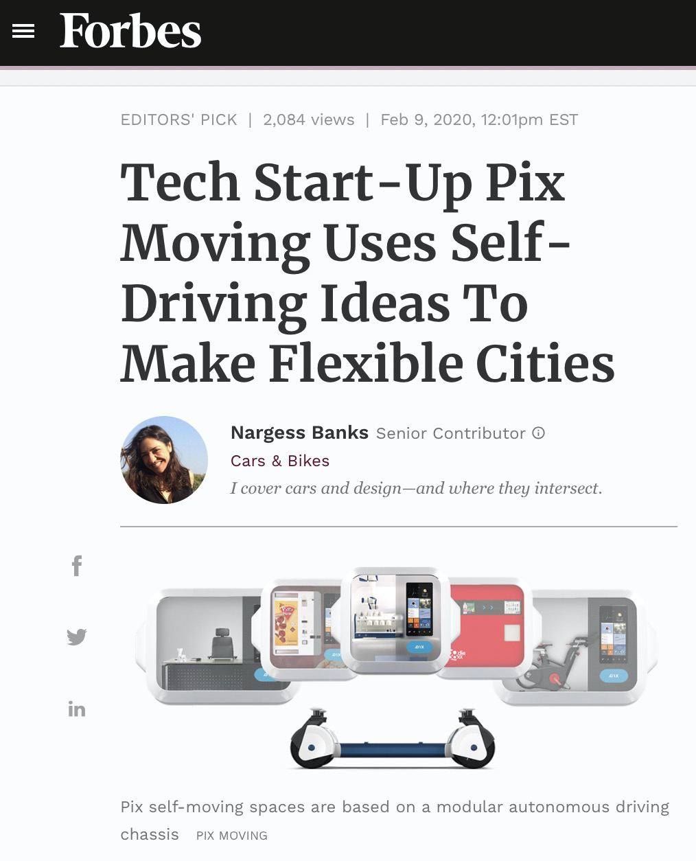 就在这期间,我们却从福布斯的英文报道中发现了一家潜行状态中的自动驾驶初创企业,让我们感受到更深的变革力量。我们在这家公司身上可以看到一副完全不同于现存所有自动驾驶公司的愿景,一条创新的商业化路径,一种独特角度的产品定义,以及一副极具张力的未来画面和深思后的实现方式。这家初创叫作 PIX Moving 像素智能,在福布斯的报道中,首先描述了他们的产品基础定义: