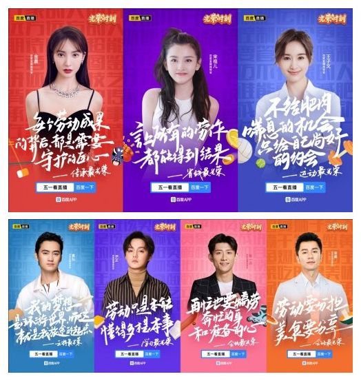 百度“五一”系列直播共设置了“云游最光荣”、“会吃最光荣”、“学习最光荣”、“运动最光荣”、“会玩最光荣”、“省钱最光荣”、“传承最光荣”等