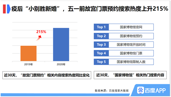 “闭关”三个多月的博物馆虽然重新开放,但大多数实行预约、错峰、限流参观。有限的参观人数无法满足人们被抑制了三个多月的热情,博物馆预约迎来一波“小别胜新婚”。百度搜索大数据显示,近