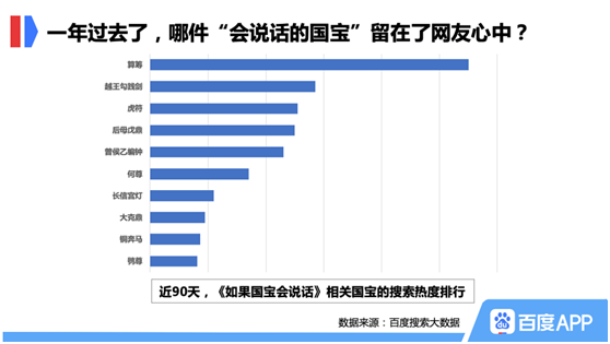 《如果国宝会说话》播出一年有余,哪件国宝给网友留下最深刻的印象呢?百度搜索大数据显示,节目里展出的国宝中,古代计算工具——算筹拔得头筹,越王勾践剑和虎符则分列亚军和季军。