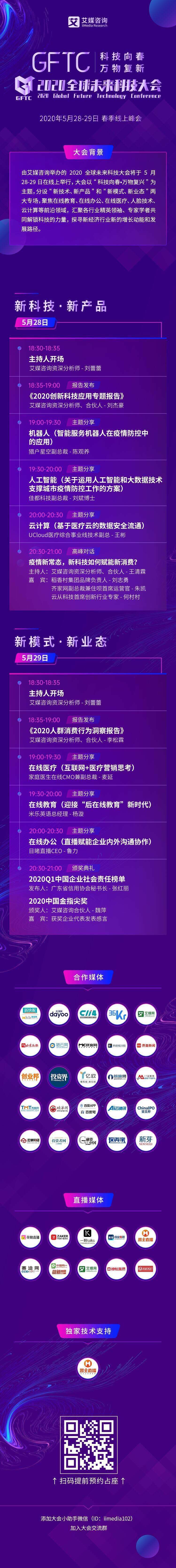 由艾媒咨询主办的“2020全球未来科技大会”将于5月28日18:30正式开播。