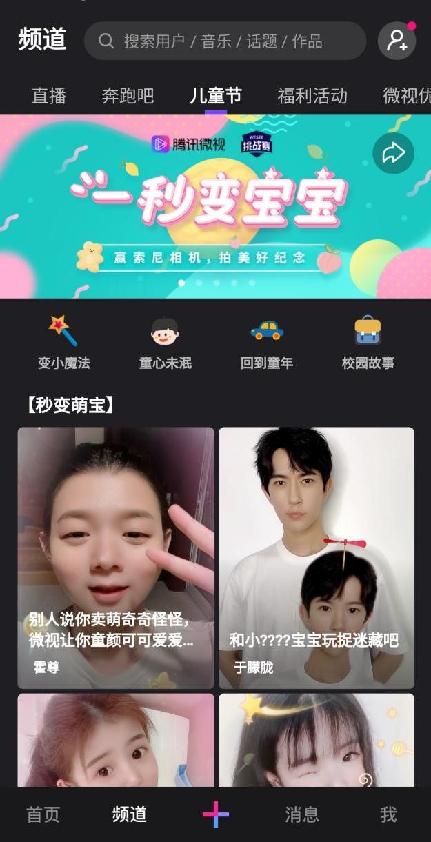 除了帮助大家“变宝宝”,腾讯微视还上线“儿童节”主题频道,通过挑战赛、话题、童年回忆精选集等形式,给“大小宝宝”们打造一个回忆满满、趣味多样的儿童节体验。