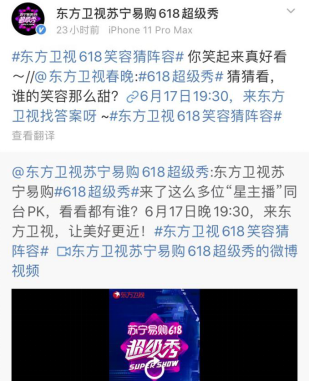 除了关注源源不断的优惠热潮,本宝宝还发现苏宁和东方卫视在17号晚上要直播一场618超级秀晚会,已经官宣的明星阵容就灰常强大了,没想到昨天推出的“笑容猜阵容”小视频里,火眼金睛的我还捕捉到不少小可爱的嘴唇。