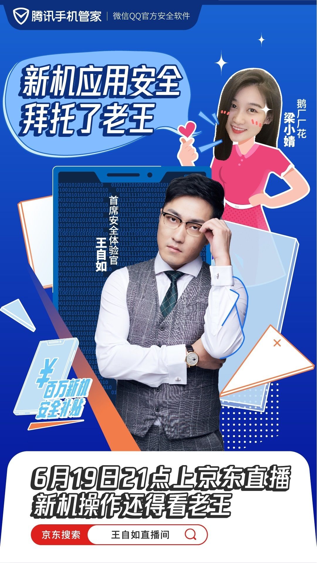 此次,腾讯手机管家携手王自如在京东直播,将聚焦新机应用安全,带来一场干货满满的安全小课堂。届时,如果你有手机安全方面的困惑,也可以与王自如实时互动,找到对应的解决方法。