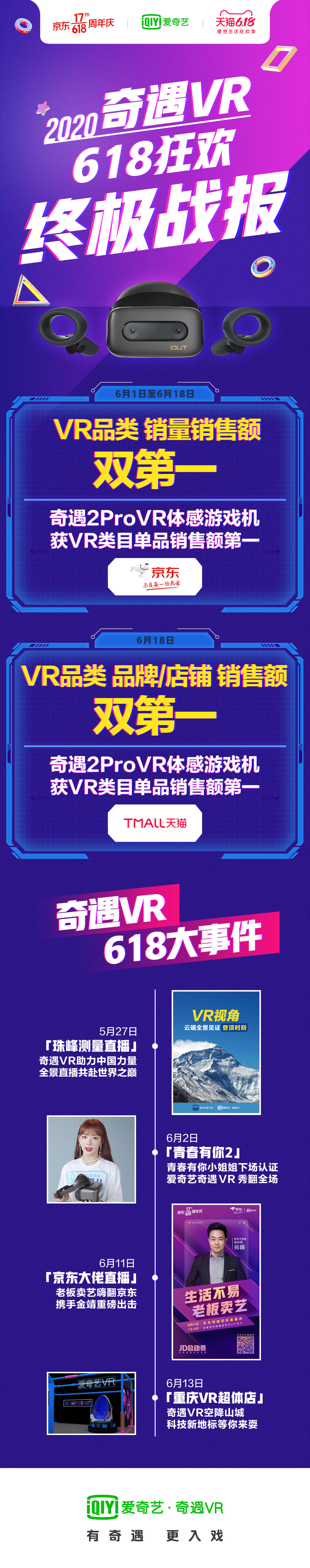 VR设备愈发受到游戏影视爱好者的欢迎,原因很简单:现实交互精准捕捉、全方位沉浸体验、“来自未来”的娱乐方式,加之《半衰期:Alyx》等精品VR大作的加持等等,VR的吸引力,越来越大。爱奇艺智能于今年3月发布的奇遇VR 2Pro体感游戏机一经面世就收获了广大玩家的青睐。今年618,奇遇VR不仅在京东与天猫双平台荣登VR品类销售榜首,新成员奇遇VR 2Pro更是获得了单品销售额第一的佳绩,成为“疫宅期”娱乐升级首选。