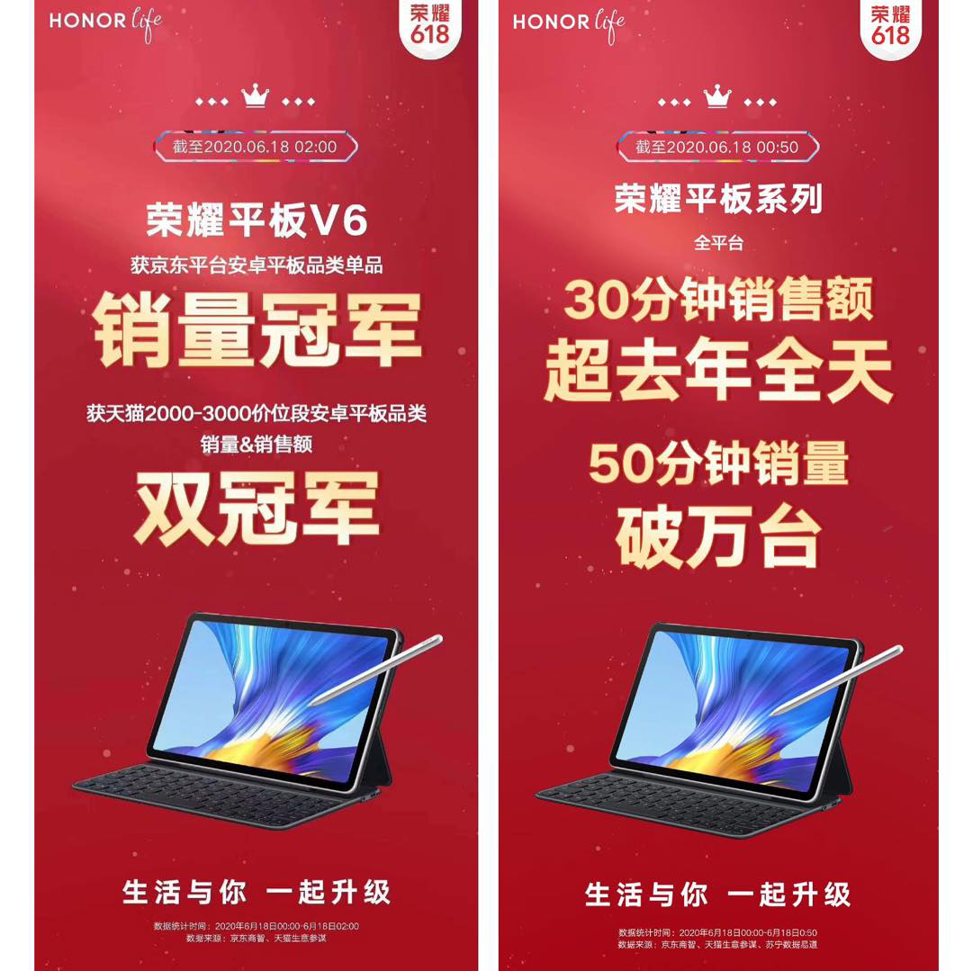 随着 618 活动开启,荣耀平板 V6 在京东、天猫等平台迅速登上了人气宝座。目前荣耀平板 V6 已有 6GB+64GB 和 6GB+128GB 两款 Wi-Fi 版可供选择,售价分别为 2199 元、2499 元。另外还有 5G 版 6GB+128GB 售价 3199 元,8GB+256GB 款(含键盘)售价 3999 元,将在 7 月开售。