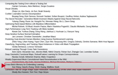码隆科技算法团队的论文 “Cross-Batch Memory for Embedding Learning”不仅入选口头报告论文,更成为获得大会最佳论文奖(Best Paper Award)提名的 26 篇论文之一,入选率仅 0.44 %。同时,码隆科技的另一篇论文“Deformable Siamese Attention Networks for Visual Object Tracking”也被大会收录。
