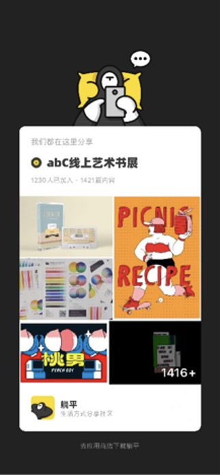 而这次 abC 线上书展与躺平 APP 这类内容社区的合作,让更多策展人、展商和喜爱艺术的人看到了另一种可能,142 位参展方在躺平 APP 内注册账号,不定期分享自己的作品,还创建了「abC 线上艺术书展」圈子,用户可以近距离和喜欢的参展方、创作者交流讨论。不仅打破了线下书展的地域限制,还为线下书展提供了作品沉淀的平台,通过躺平 APP 的平台,让更多对艺术有好奇的人,可以有近距离了解的机会。