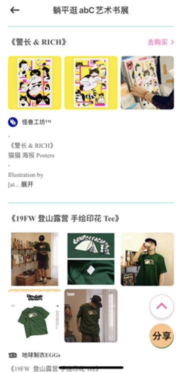 据了解,躺平 APP 作为阿里巴巴旗下生活记录社区,专注于文化艺术、潮玩、DIY 等兴趣圈的打造,且具备关联淘宝商品,支持一键下单的能力,这不仅为「云逛展」用户提供了随时随地逛艺术展的可能,还为所有书展商品提供了线上售卖的平台。