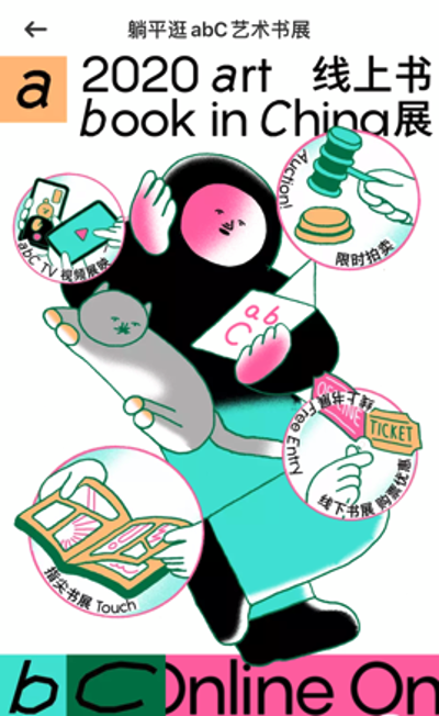 7 月 2 日-7 月 5 日,2020 年 abC 艺术书展联合躺平 APP 以线上展的形式亮相,汇聚了来自 14 个国家地区共 142 位参展方,以视频、图片等形式「云亮相」。喜爱艺术和书的逛展用户,将首次体验打破空间距离的 abC 艺术书展。