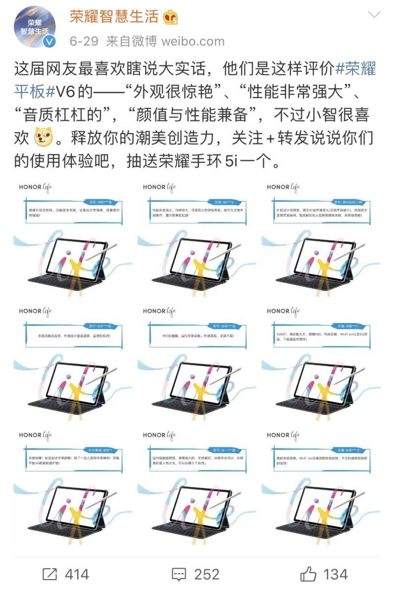 通过荣耀智慧生活官微,也可以看出用户对荣耀平板 V6 的各项性能都很满意,给出了「外观很惊艳」、「性能非常强大」、「音质杠杠的」,「颜值与性能兼备」等诸多好评,让我们相信钛空银版本正式上市后,同样会引发新一轮认购热潮。