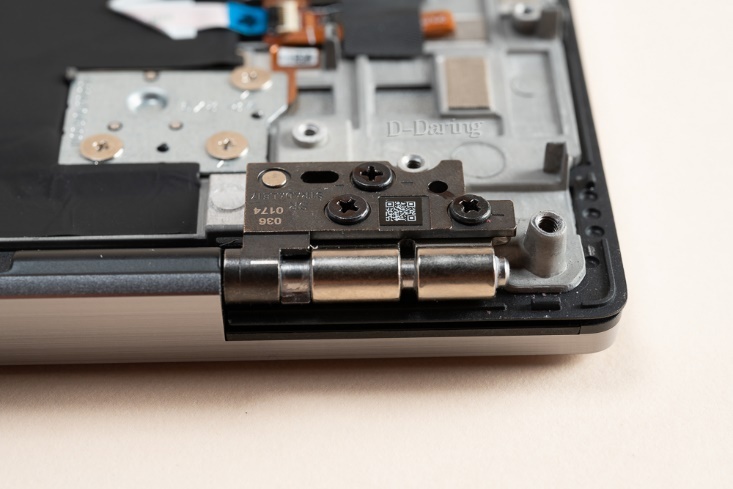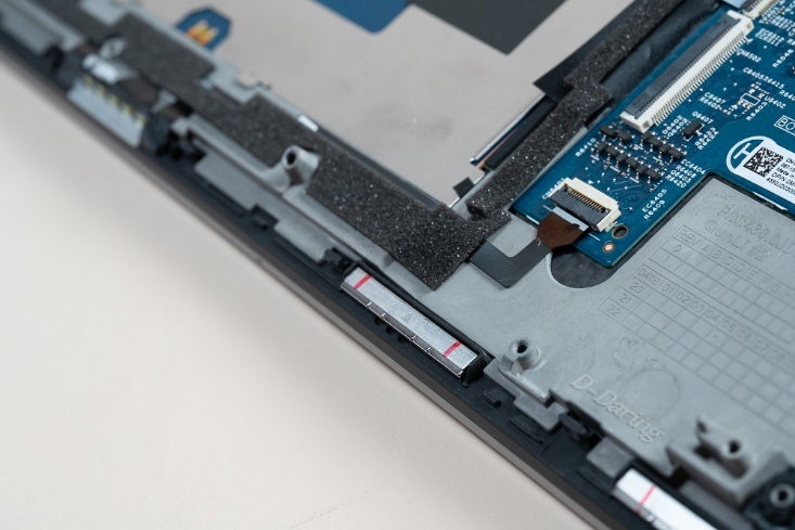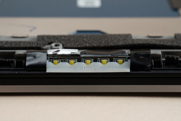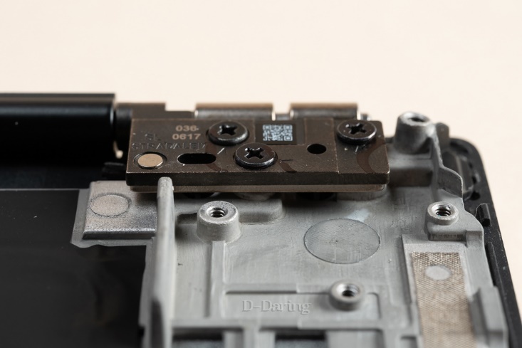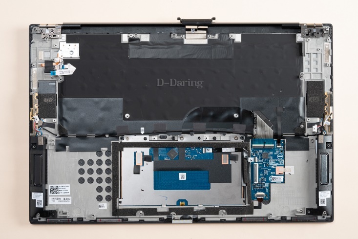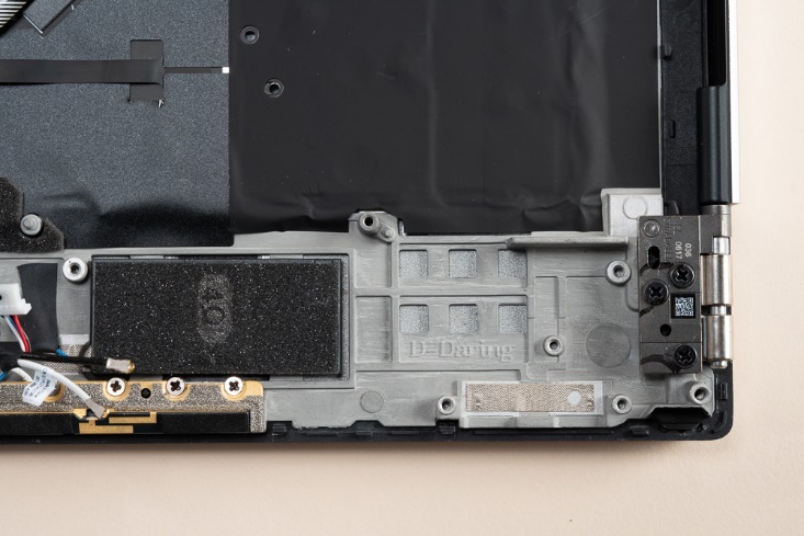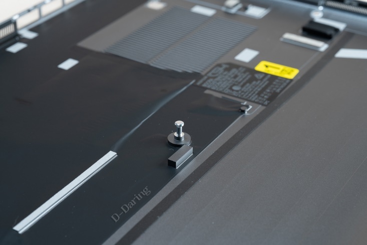 这,便是我所说的键盘钢板,明显能看到整个C面是双层结构,碳纤维+镁合金、键盘+双层钢板,难怪按键那么稳固。