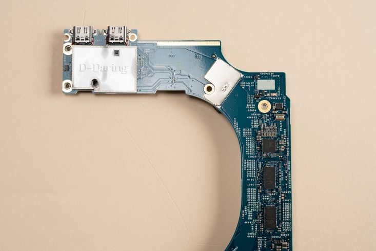 滤波电容居然放到了主板靠掌托面,按理说这种设计也会导致c面温度升高(虽然这种电容产热不大),特别是这种c面没有进风连同风扇都堵上的结构,此乃大忌也。不过正面确实也没位置就是