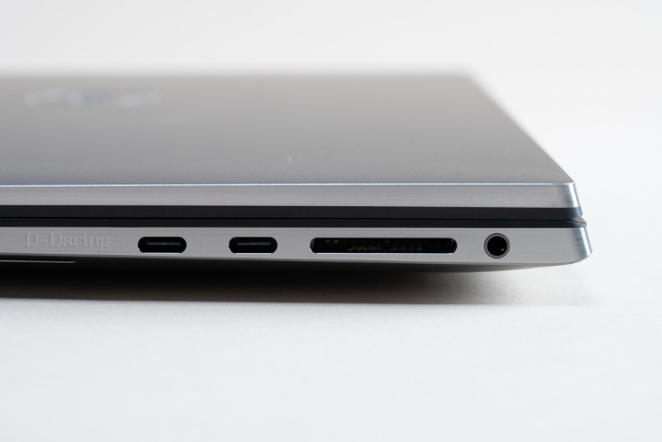 右侧依然是两个TB3,功能同左、一个高速SD读卡器以及3.5mm耳麦孔
