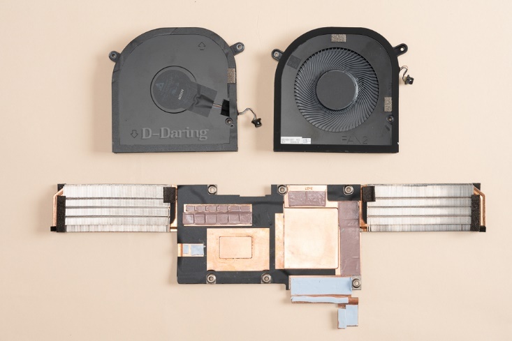 接下来是主板以及两个巨型风扇,均热板散热(典型的钱)