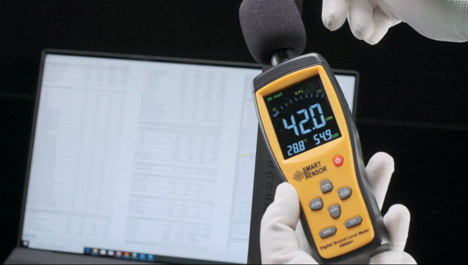 距离掌托垂直45cm的噪音为42,基本和环境噪音不相上下了。不过因为声音类型不同,还是能听到的。
