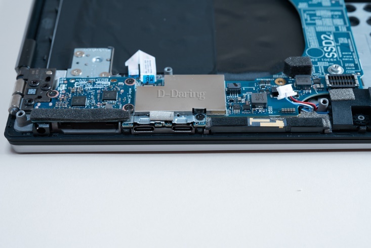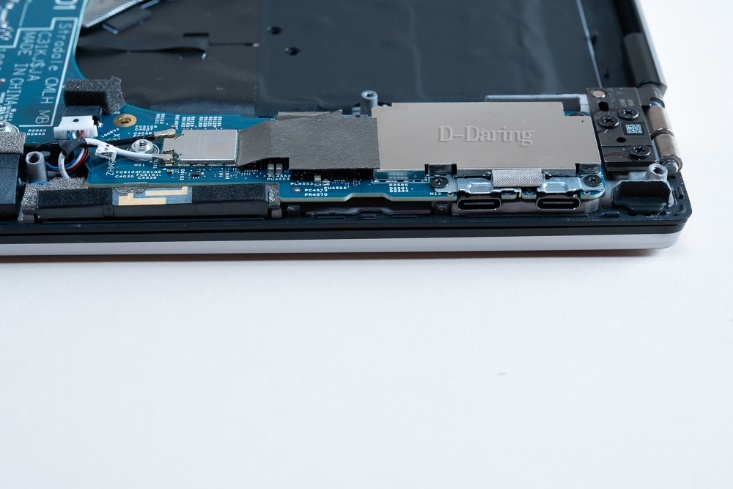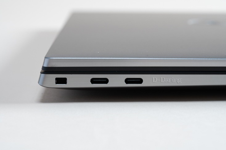 左侧是nobel锁孔以及两个满速全功能TB3接口,支持戴尔独家130w单口供电协议