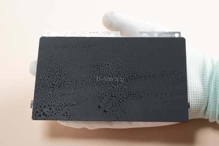 关机状态下的屏幕很深邃,整体感很强,经过一两周暴力蹂躏测试的掌托也很容易擦干净
